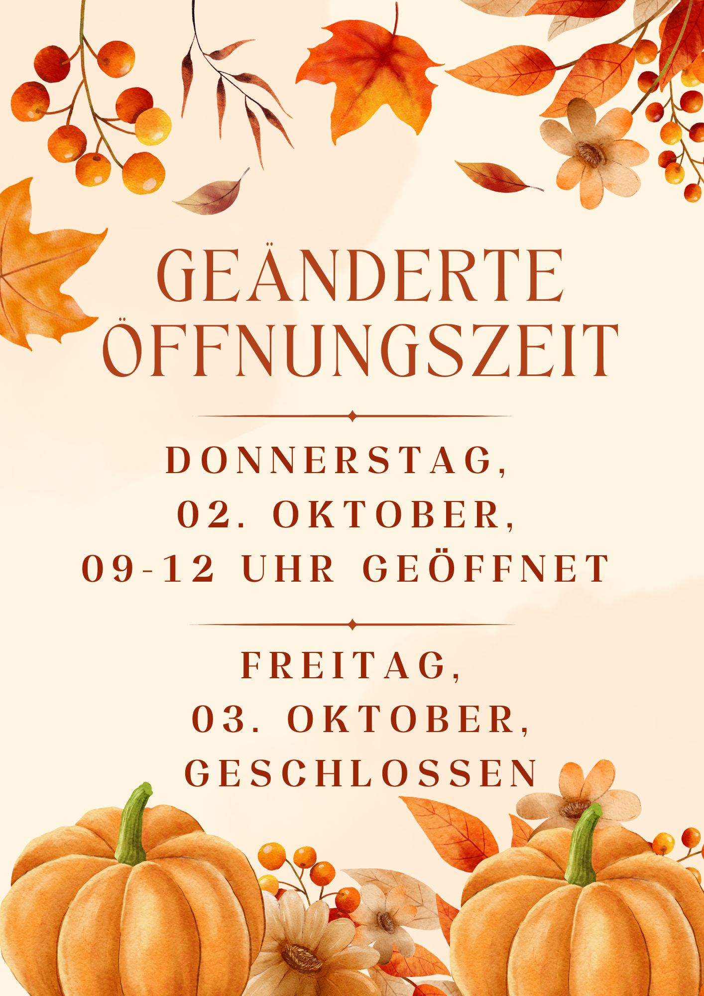 Am Tag der deutschen Einheit haben wir geschlossen. Dafür sind wir am Donnerstag, 02. Oktober 2025, von 9-12 Uhr für Sie da.